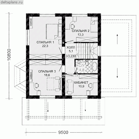 4 спальн. · 3 санузл. · 4 этаж
