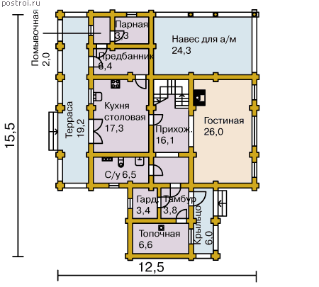 Проект одноэтажного дома "Аль Таяр" из бруса