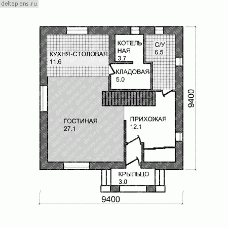 Проект одноэтажного дома с террасой Riven-111 м² из газоблока — Домострой