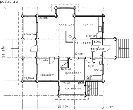 Проект одноэтажного коттеджа "Нобис" из газобетона