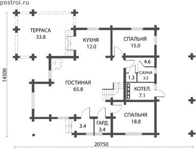 Проект одноэтажного дома "Энцелад" из бруса