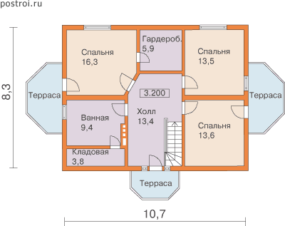 4 спальн. · 2 санузл. · 2 этаж