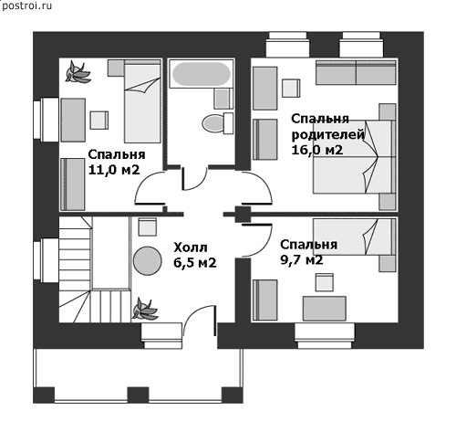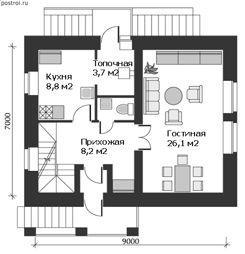 Проект одноэтажного дома "Чех" (с топочной) из бруса