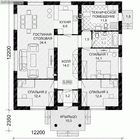 3 спальн. · 3 санузл. · 1 этаж