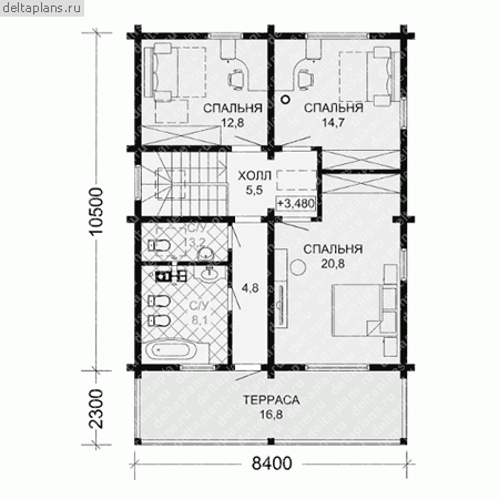 3 спальн. · 2 этаж