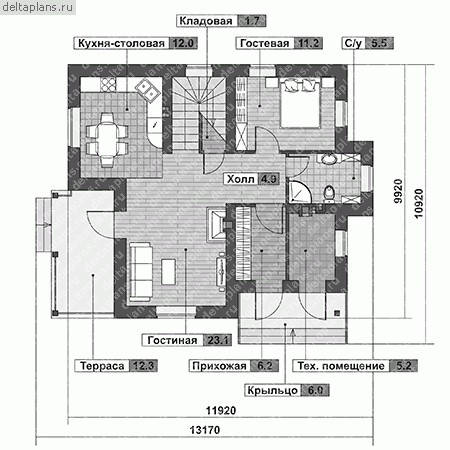 Проект одноэтажного дома "Радуга" из бруса