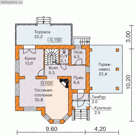 Проект одноэтажного коттеджа "Пик-а-Бу" из газобетона