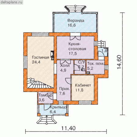 Проект одноэтажного каркасного дома Бунгало L под ключ от компании БАКО