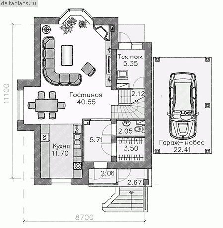 Проект одноэтажного дома "Чех-М2" (с топочной) из бруса