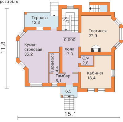 Проект одноэтажного коттеджа "Малиновый" из газобетона