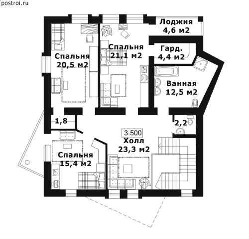 3 спальн. · 2 санузл.