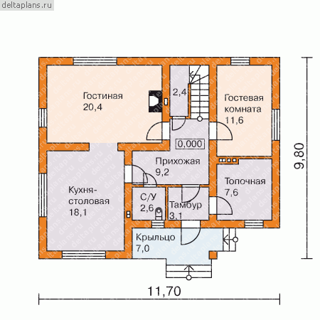 Одноэтажный дом рубленное бревно «Гепард» | ЭкоТех