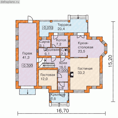 Проект одноэтажного коттеджа "Янтарин" из газобетона