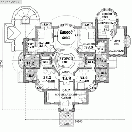 6 спальн. · 9 санузл. · 2 этаж