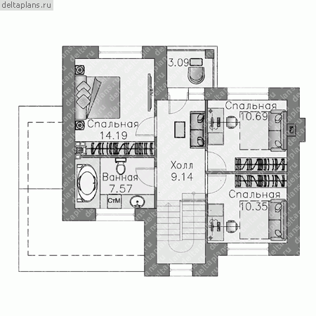 3 спальн. · 2 санузл. · 2 этаж