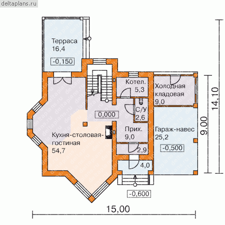 Проект одноэтажного коттеджа "Ярополк" из газобетона