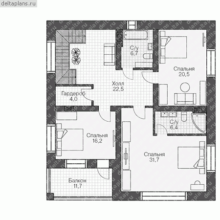 3 спальн. · 4 санузл. · 2 этаж