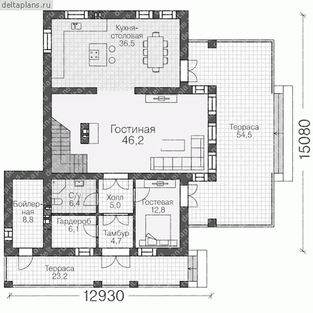 Проект одноэтажного коттеджа "Корсика КД" из газобетона
