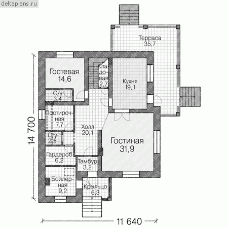 Проект одноэтажного загородного дома. Арх. М.А.Кузьмин (1874 г.) из бруса