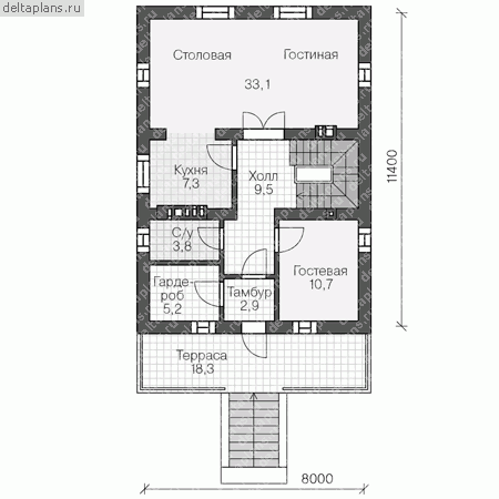 Проект одноэтажного коттеджа "Европа КД" из газобетона