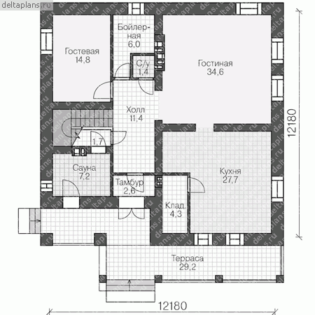 Проект одноэтажного коттеджа "Душистая Сирень" из газобетона