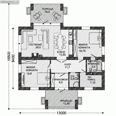 Проект одноэтажного дома с террасой Riven-111 м² из газоблока — Домострой