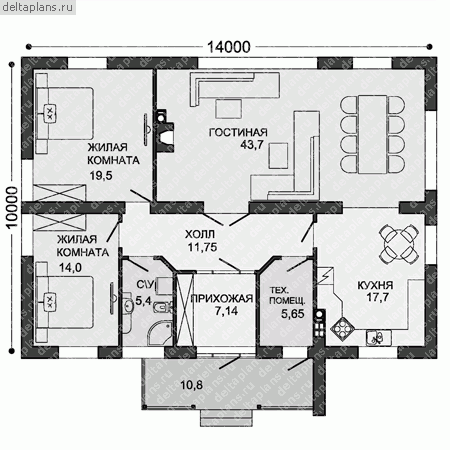 Проект одноэтажного коттеджа "Иволга" из газобетона