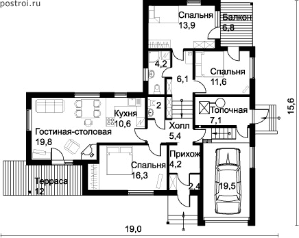 Проект одноэтажного дома "Титан" из бруса