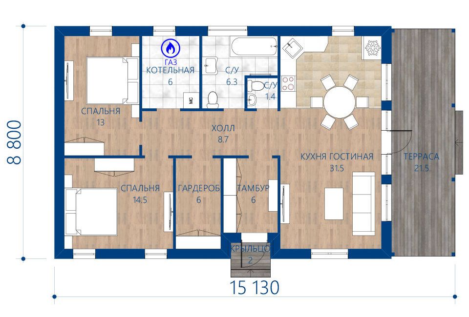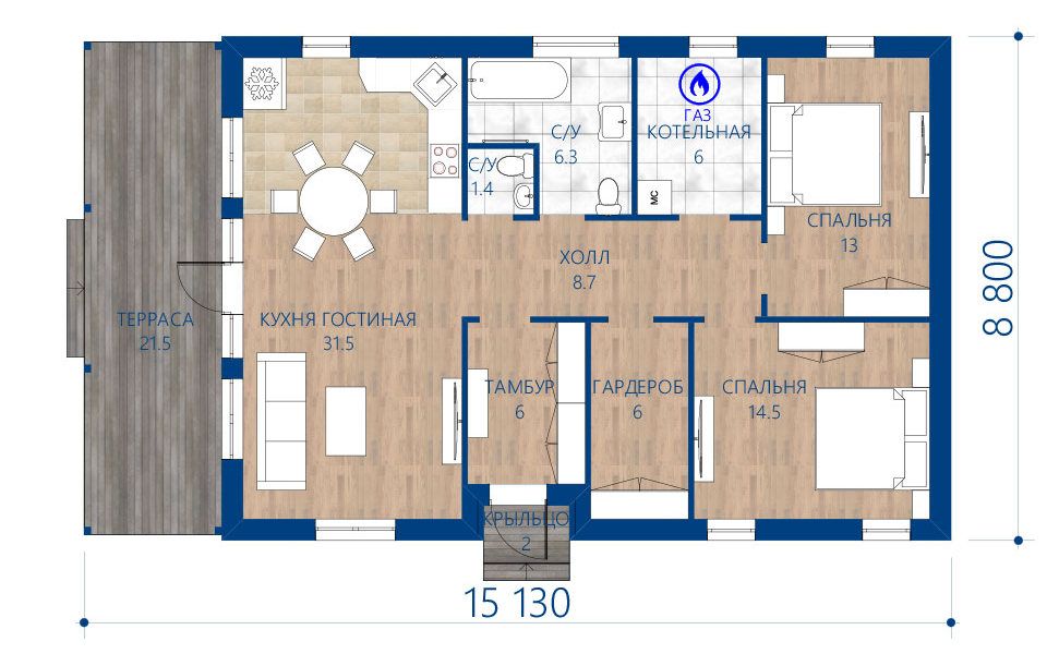 Проект одноэтажного дома "Рубин" из бруса