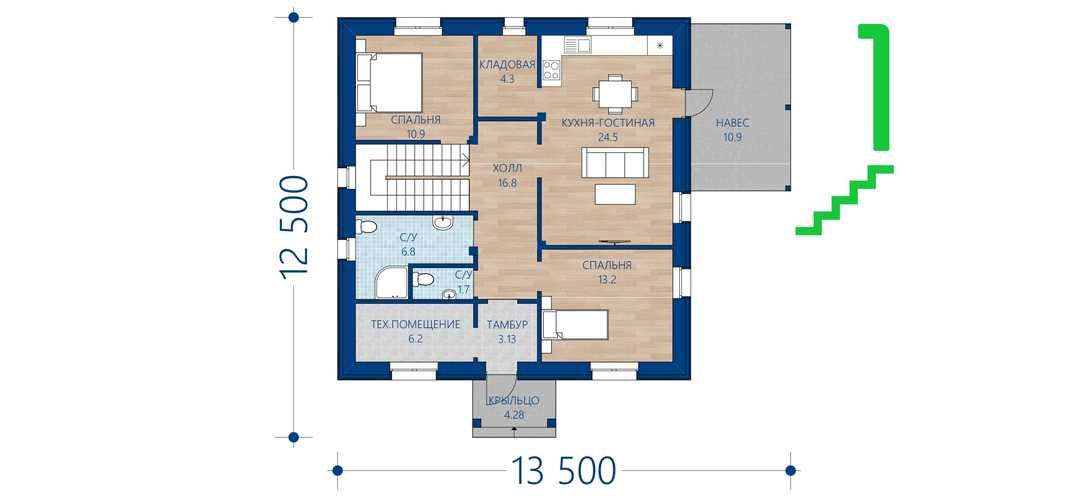 Проект одноэтажного каркасного дома "Чери"