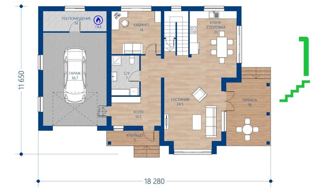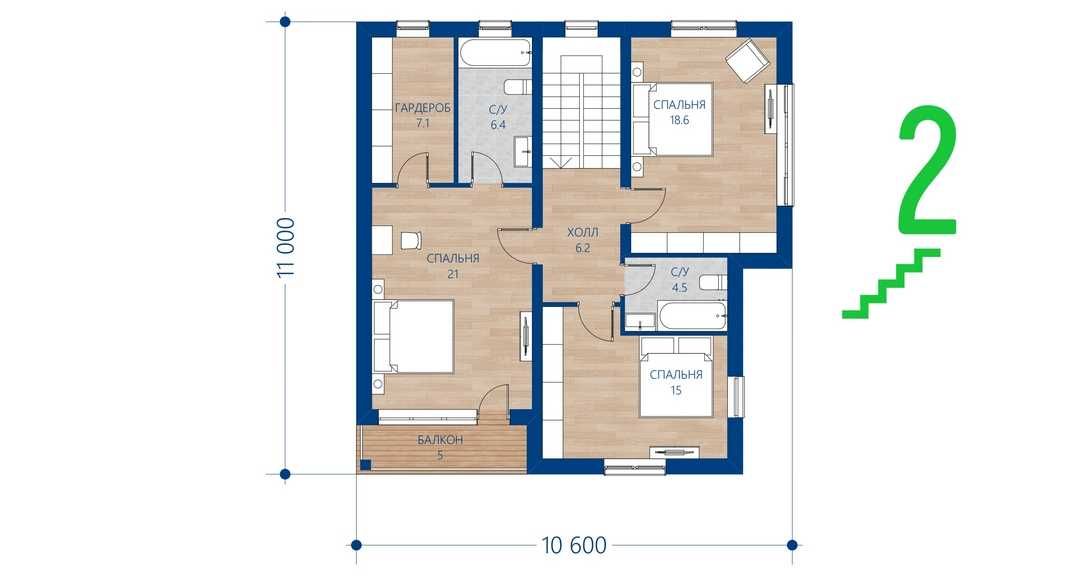 Проект двухэтажного коттеджа "Памир" из газобетона