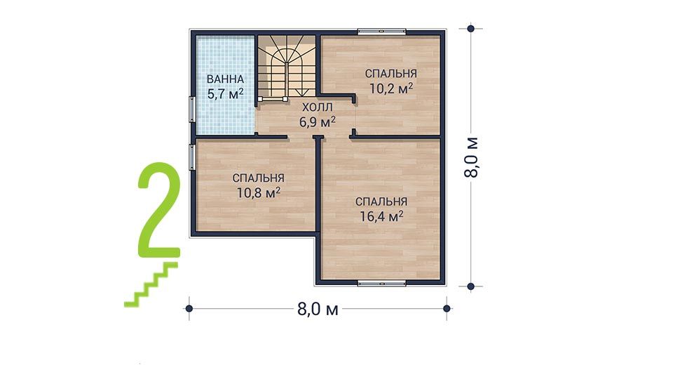 2 спальн. · 2 этаж