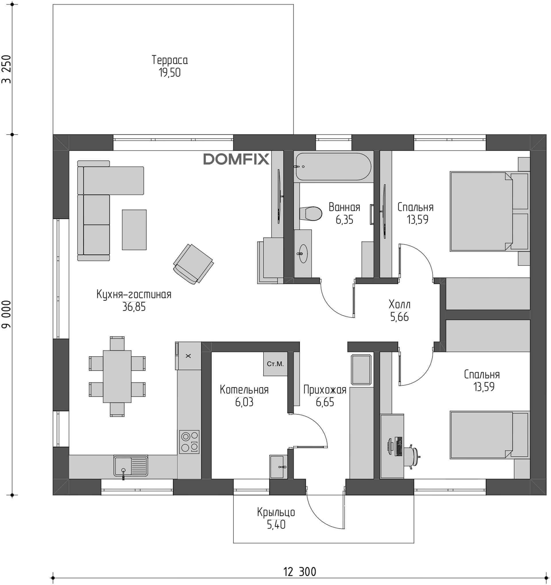 Проект DOMFIX 1 - одноэтажный каменный дом