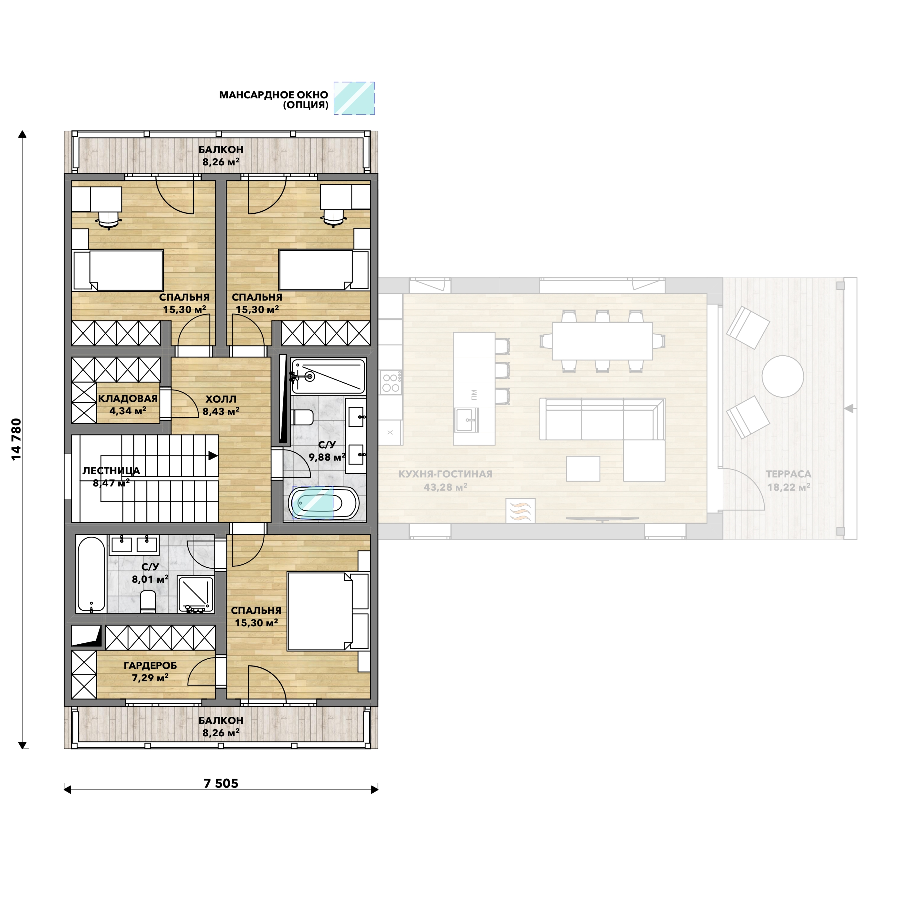 4 спальн. · 2 этаж